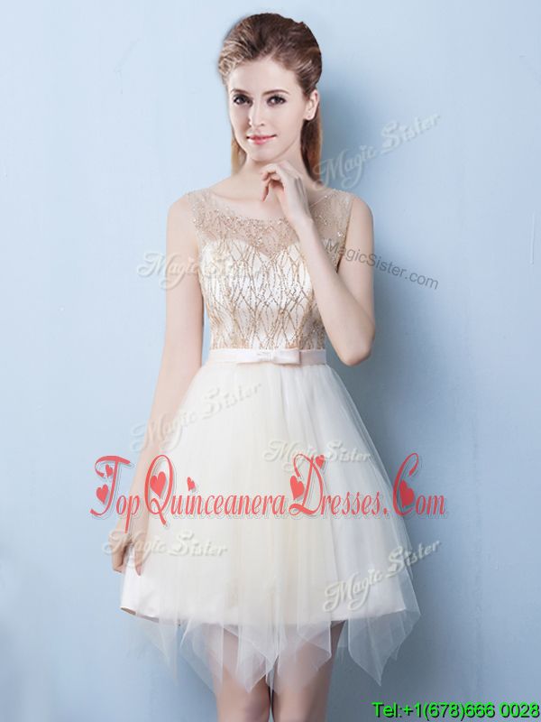 Scoop Sleeveless Lace Up Asymmetrical Sequins and Bowknot Damas Dress