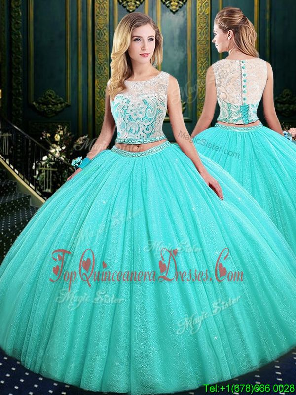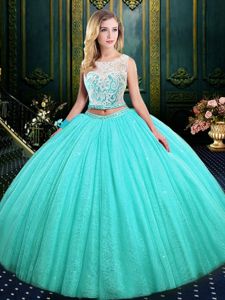Scoop Sleeveless Lace Up Floor Length Lace and Sequins Sweet 16 Dresses