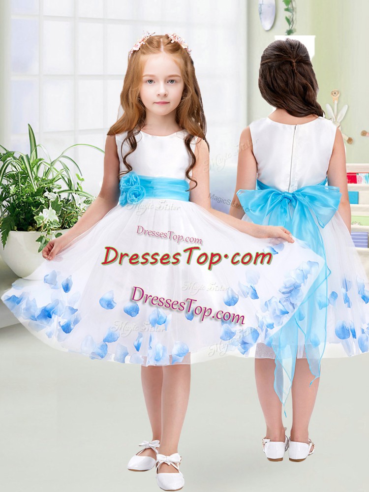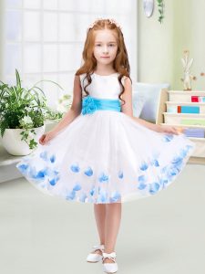 Scoop Sleeveless Little Girls Pageant Dress Knee Length Appliques and Belt White Tulle