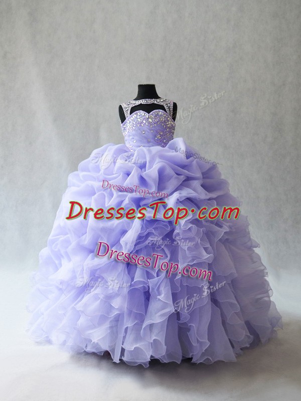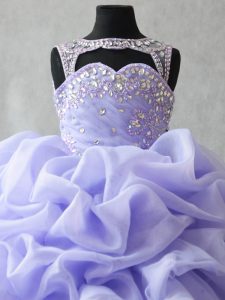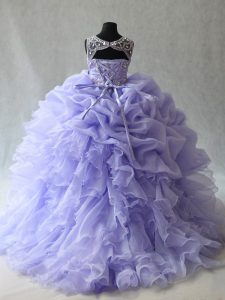 Scoop Sleeveless Organza Little Girls Pageant Dress Wholesale Beading and Ruffles and Pick Ups Brush Train Lace Up