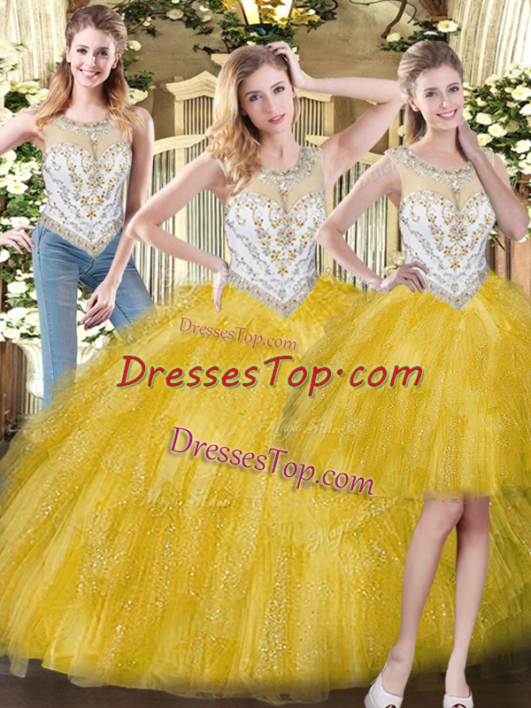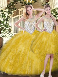Scoop Sleeveless Organza Quince Ball Gowns Beading and Ruffles Zipper