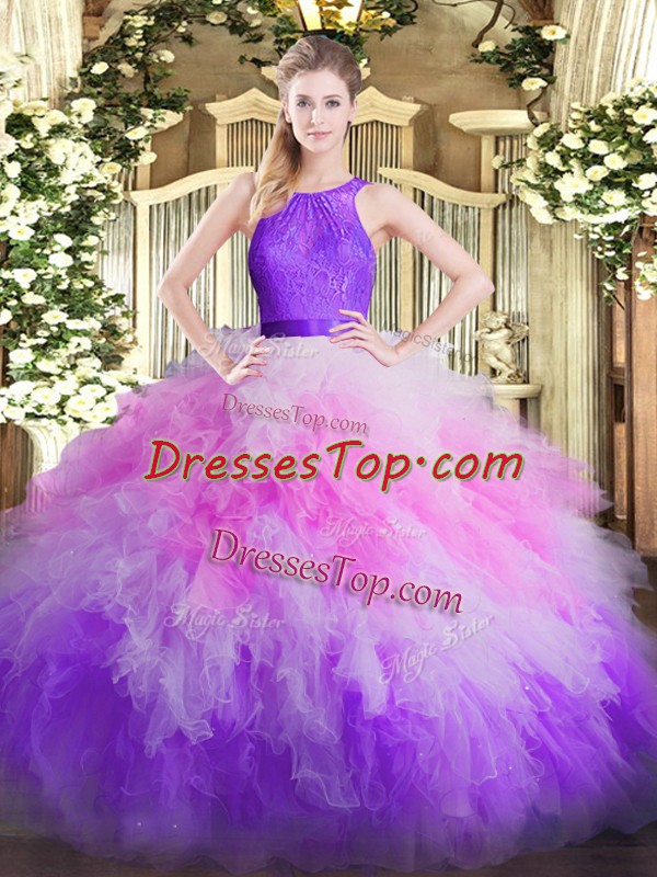 Scoop Sleeveless Organza Quinceanera Dresses Ruffles Zipper