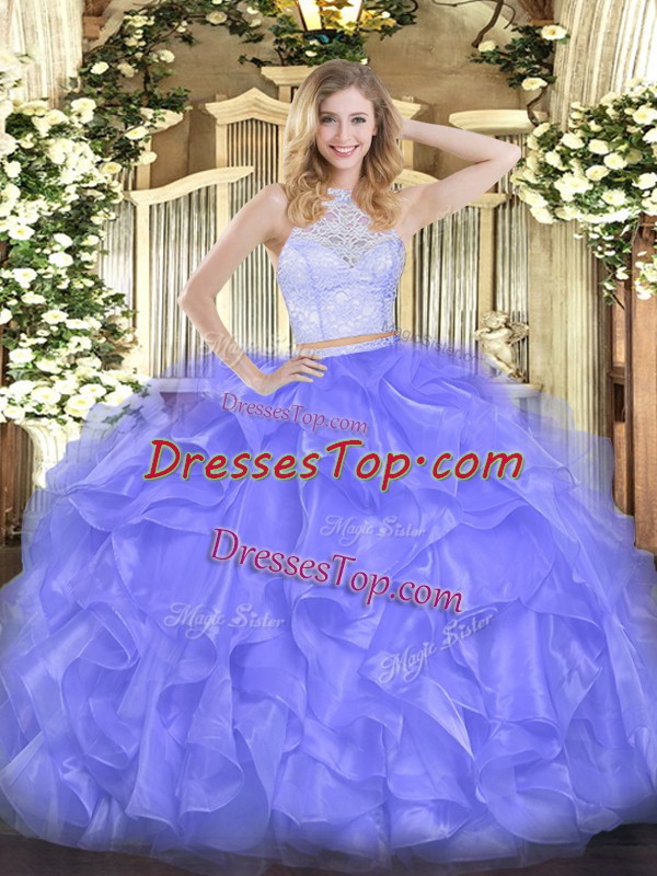 Scoop Sleeveless Organza Quinceanera Gown Lace and Ruffles Zipper