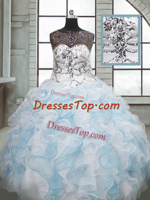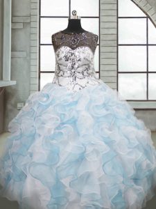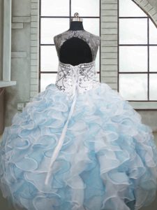 Scoop Sleeveless Organza Sweet 16 Dress Beading and Ruffles Lace Up