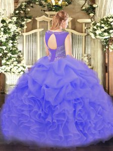 Scoop Sleeveless Organza Vestidos de Quinceanera Beading and Ruffles and Pick Ups Lace Up