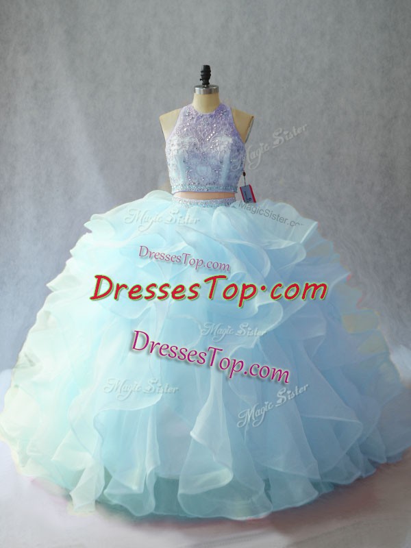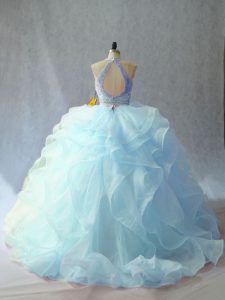 Scoop Sleeveless Organza Vestidos de Quinceanera Beading and Ruffles Brush Train Backless