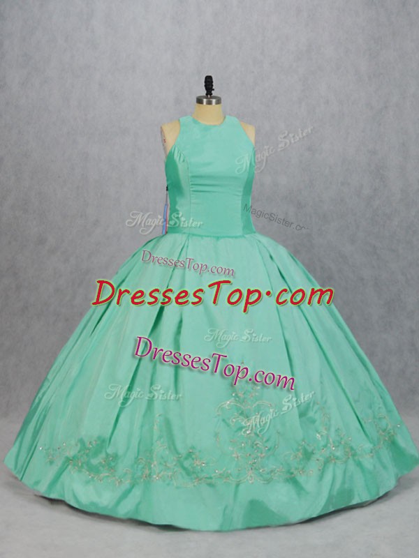 Scoop Sleeveless Satin Quince Ball Gowns Embroidery Zipper