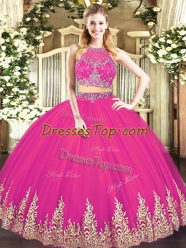 Scoop Sleeveless Tulle 15 Quinceanera Dress Beading and Appliques Zipper