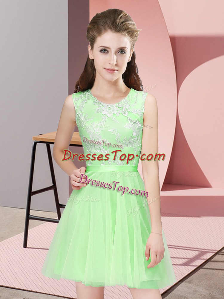 Scoop Sleeveless Tulle Dama Dress for Quinceanera Lace Side Zipper