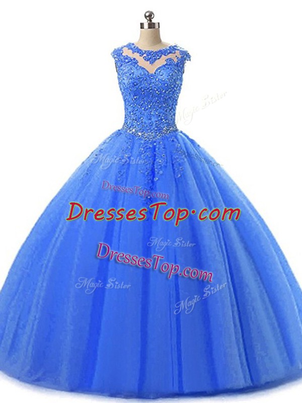Scoop Sleeveless Tulle Quinceanera Gown Beading and Lace Lace Up
