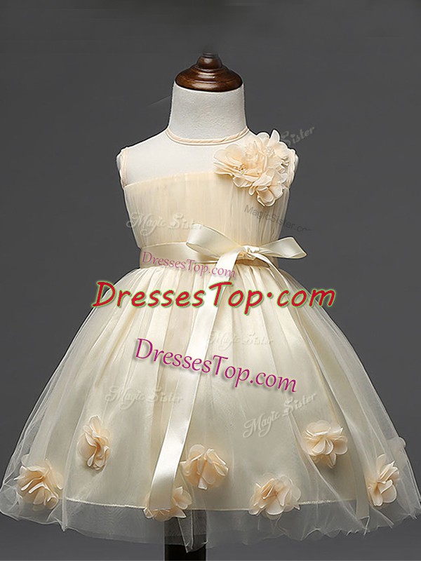 Scoop Sleeveless Zipper Glitz Pageant Dress Champagne Tulle