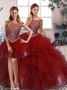 Scoop Sleeveless Zipper Sweet 16 Dresses Burgundy Organza