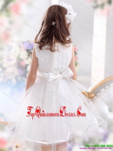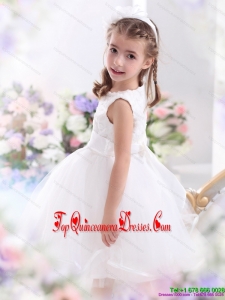 Scoop Tea Length White New Arrival 2015 Little Girl Pageant Dress with Sash
