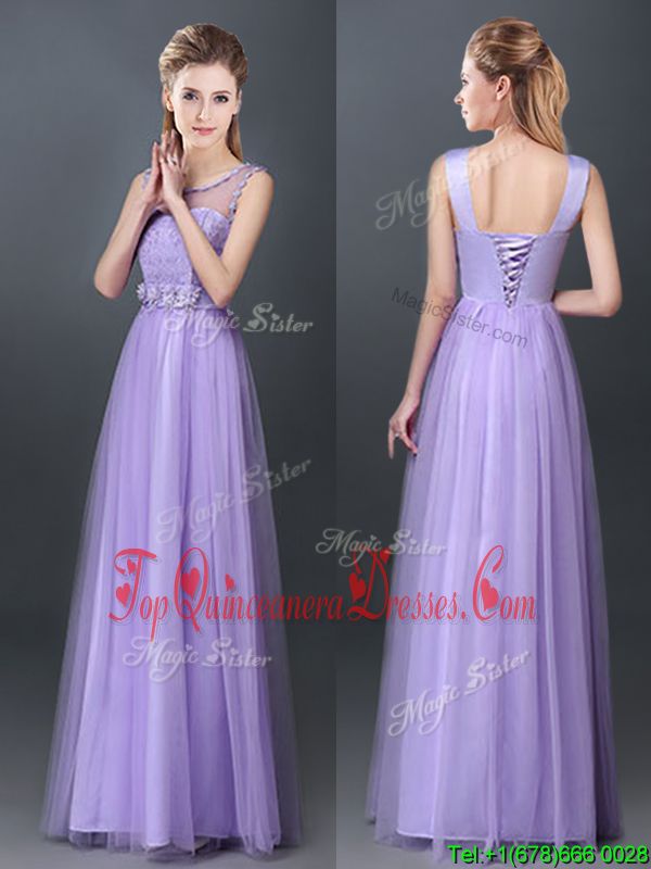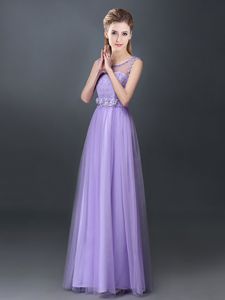 Scoop Tulle Sleeveless Floor Length Quinceanera Court Dresses and Lace and Hand Made Flower