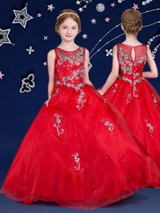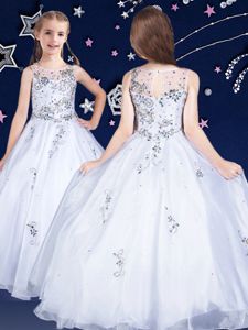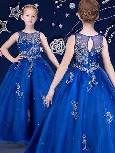 Scoop White and Red and Royal Blue Sleeveless Floor Length Beading Zipper Little Girl Pageant Dress