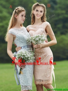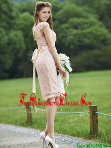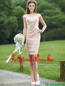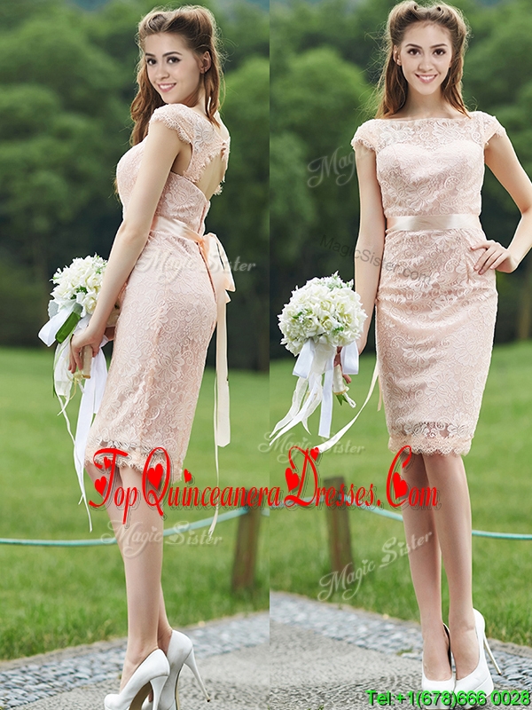 See Through Scoop Cap Sleeves Dama Dress with Sashes