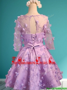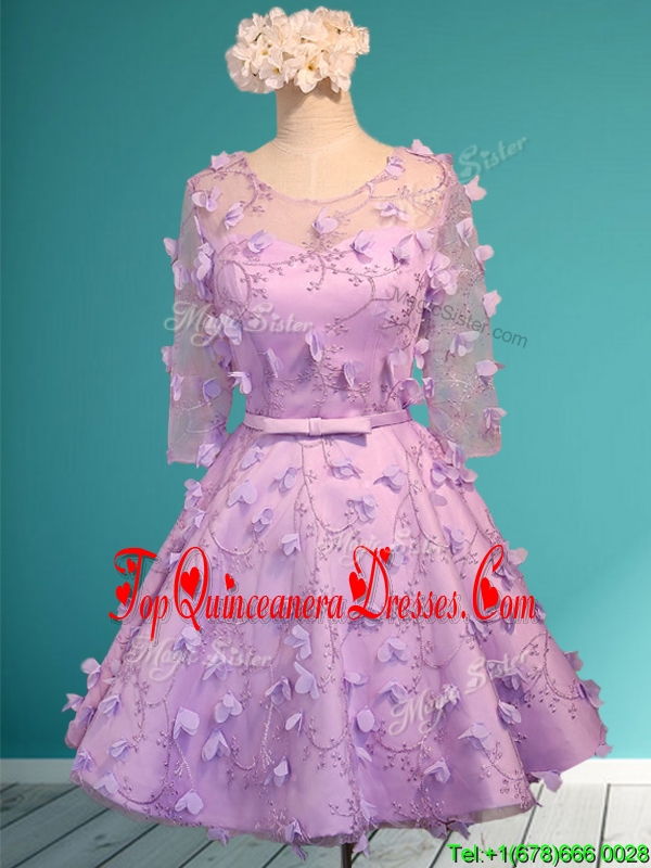 See Through Scoop Half Sleeves Damas Dress with Appliques and Belt