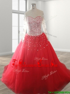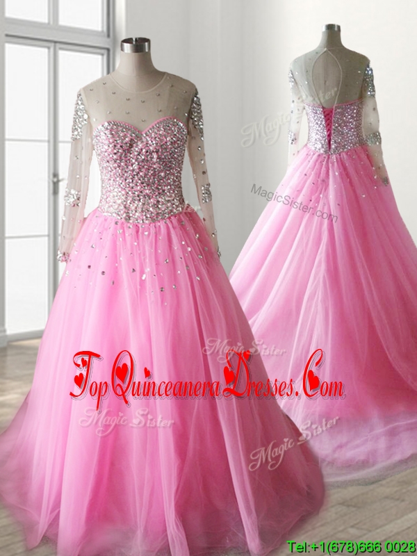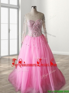 See Through Scoop Long Sleeves Quinceanera Dress with Beading