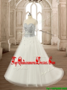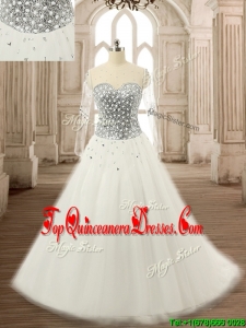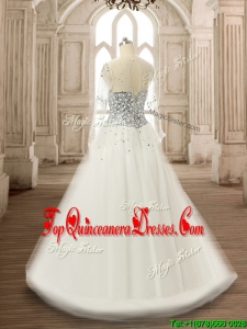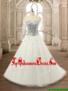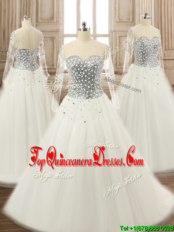 See Through Scoop Long Sleeves White Quinceanera Dress with Beading