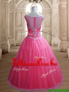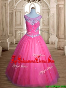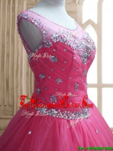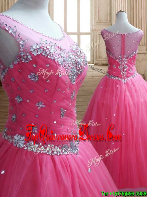 See Through Scoop Rose Pink Quinceanera Dress with Beading