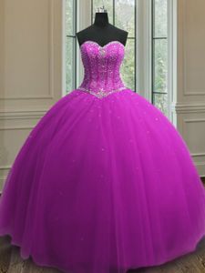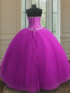 Sequins Sweetheart Sleeveless Lace Up Quinceanera Gowns Purple Tulle