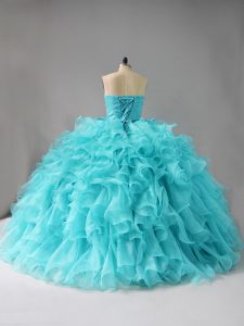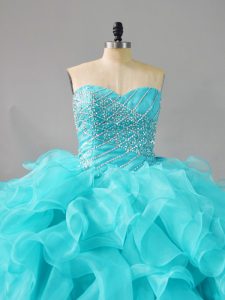 Sexy Aqua Blue Organza Lace Up Quinceanera Dresses Sleeveless Beading and Ruffles
