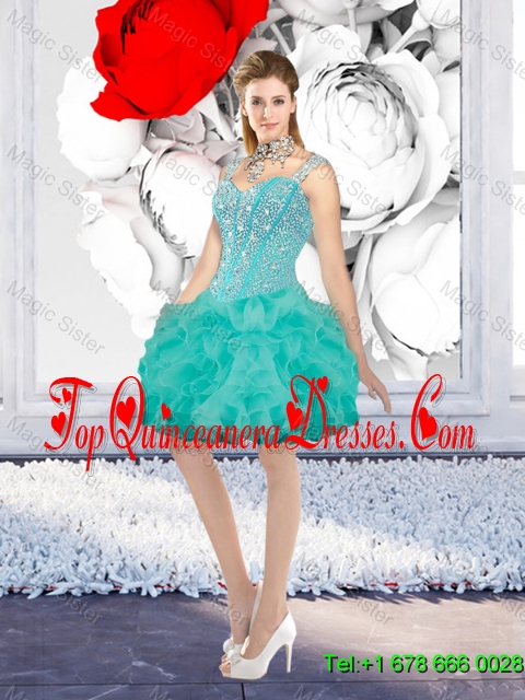 Sexy Ball Gown Beaded Quinceanera Dama Dresses with Straps in Turquoise