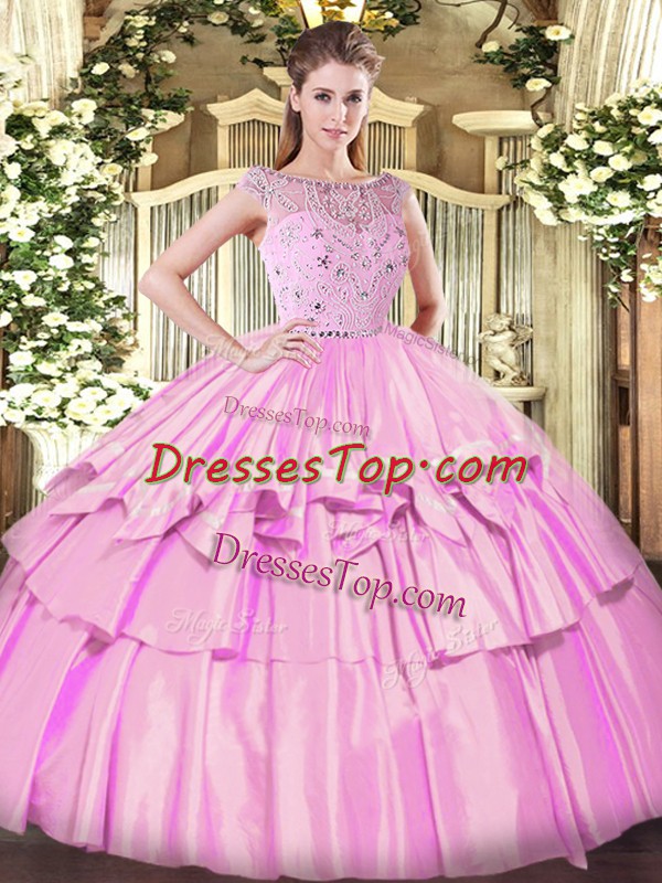 Sexy Ball Gowns Sweet 16 Dress Lilac Bateau Tulle Sleeveless Floor Length Zipper