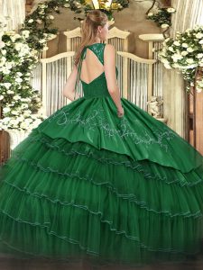 Sexy Floor Length Brown Quince Ball Gowns Satin and Tulle Sleeveless Beading and Embroidery and Ruffled Layers