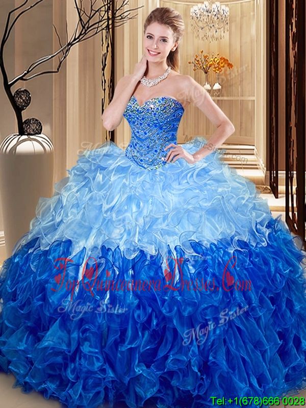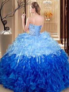 Sexy Four Piece Floor Length Zipper Quinceanera Dresses Royal Blue and In for Military Ball and Sweet 16 and Quinceanera with Beading and Pick Ups