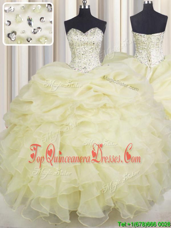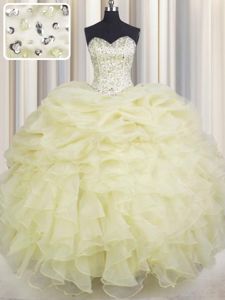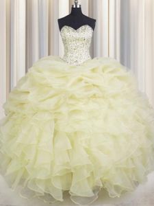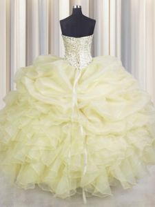 Sexy Light Yellow Lace Up Sweet 16 Dresses Beading and Ruffles Sleeveless Floor Length