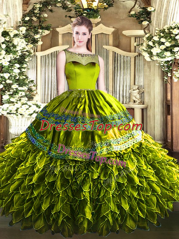 Sexy Organza and Taffeta Sleeveless Floor Length Sweet 16 Dresses and Beading and Ruffles