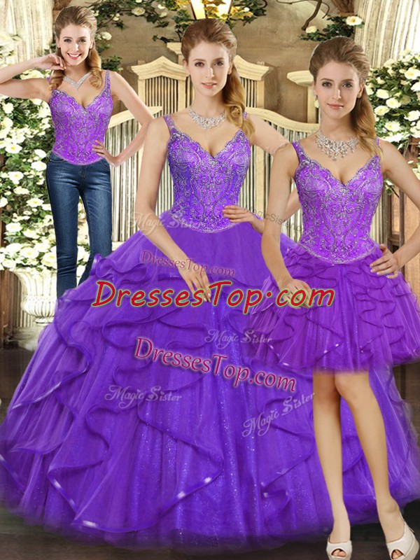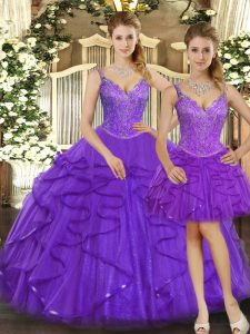 Sexy Purple Lace Up Sweet 16 Dresses Beading and Ruffles Sleeveless Floor Length