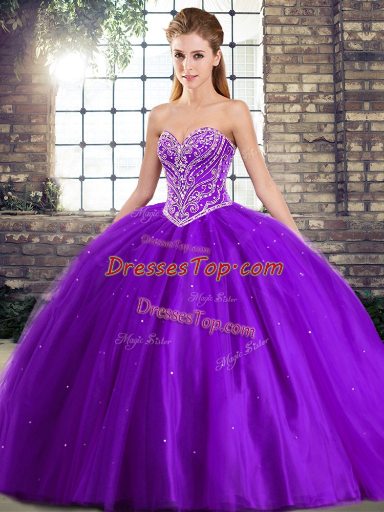 Sexy Purple Sweetheart Neckline Beading Sweet 16 Quinceanera Dress Sleeveless Lace Up