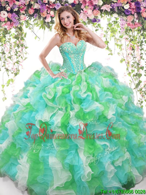 Sexy Sleeveless Organza Floor Length Lace Up Quinceanera Gown in Multi-color for with Beading and Ruffles