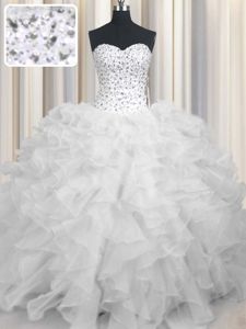 Sexy Sweetheart Sleeveless Organza Sweet 16 Dress Beading and Ruffles Lace Up