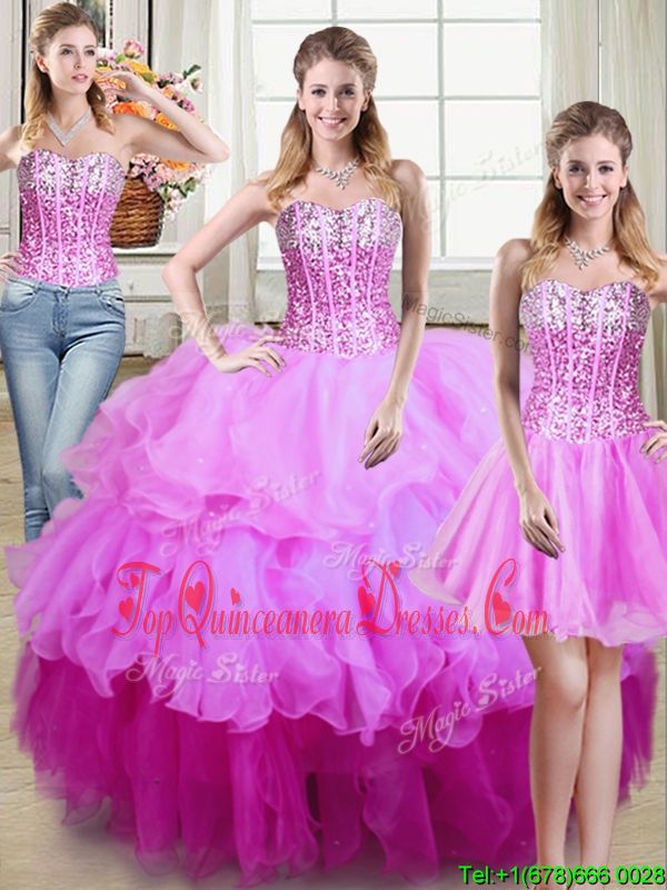 Sexy Three Piece Multi-color Sweetheart Neckline Ruffles and Sequins Sweet 16 Quinceanera Dress Sleeveless Lace Up