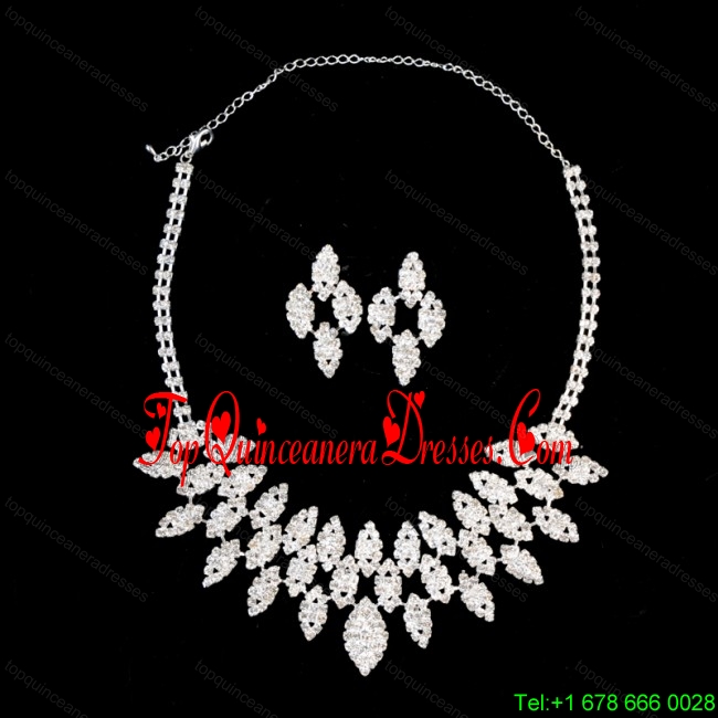 Shimmering Alloy With Rhinestones Ladies Necklace and Earrings Jewelry Set