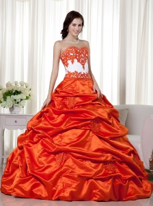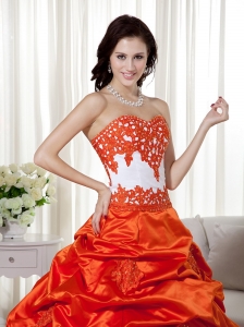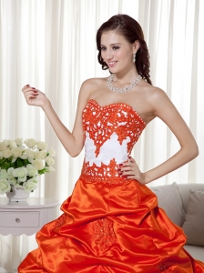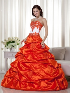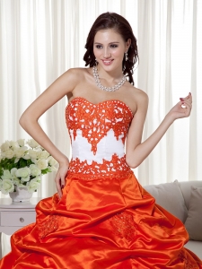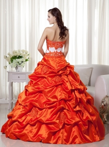 Shimmering Orange Pick-up Embroidery Quinceanera Dress
