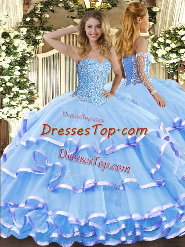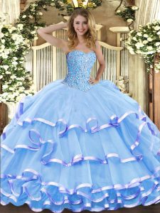 Shining Aqua Blue Sleeveless Beading and Ruffled Layers Floor Length 15 Quinceanera Dress
