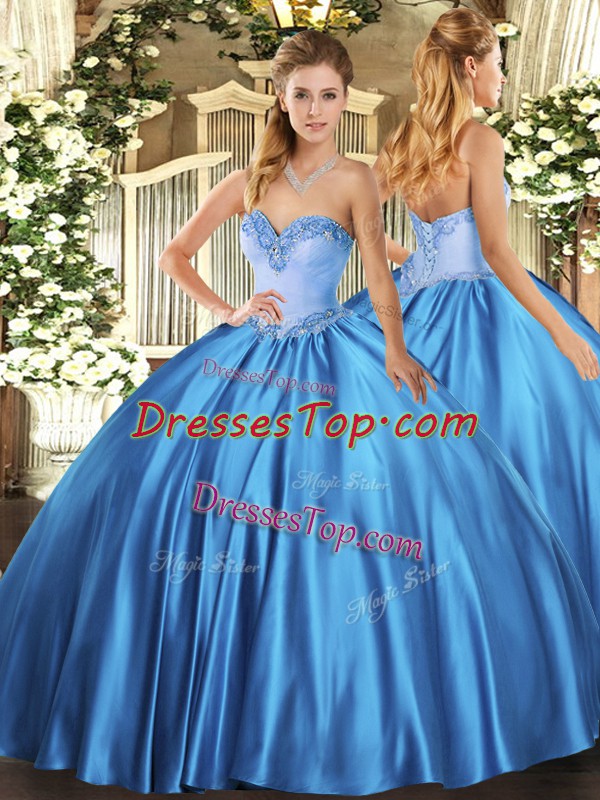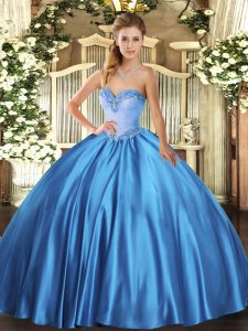 Shining Baby Blue Lace Up Sweetheart Beading 15th Birthday Dress Satin Sleeveless