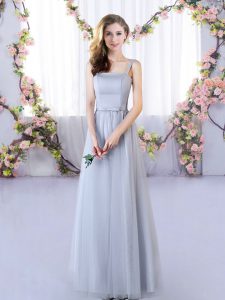 Shining Grey Empire Straps Sleeveless Tulle Floor Length Lace Up Appliques Quinceanera Court of Honor Dress