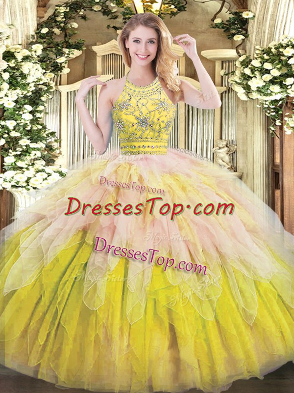 Shining Halter Top Sleeveless Zipper Vestidos de Quinceanera Multi-color Tulle