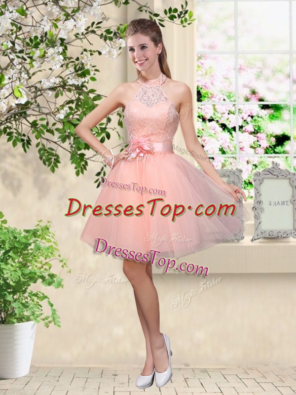 Shining Knee Length A-line Sleeveless Peach Quinceanera Court Dresses Lace Up