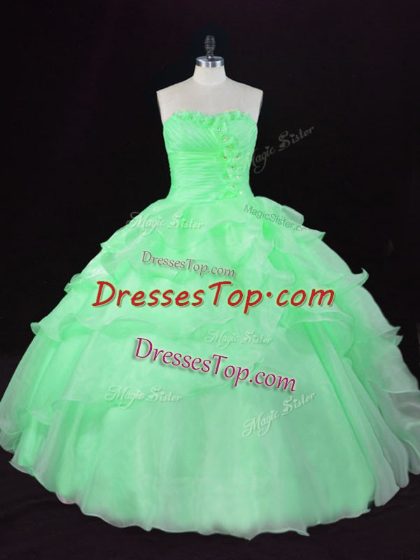 Shining Lace Up Sweetheart Hand Made Flower Quinceanera Dress Organza Sleeveless