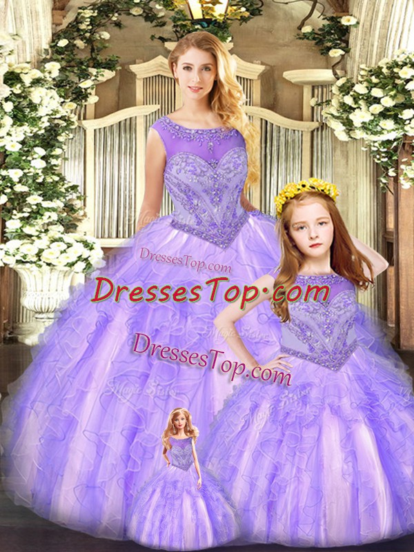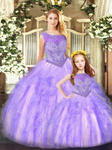 Shining Lavender Sleeveless Floor Length Beading and Ruffles Lace Up Quinceanera Dress