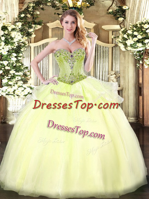 Shining Light Yellow Sleeveless Organza Lace Up Sweet 16 Dress for Military Ball and Sweet 16 and Quinceanera