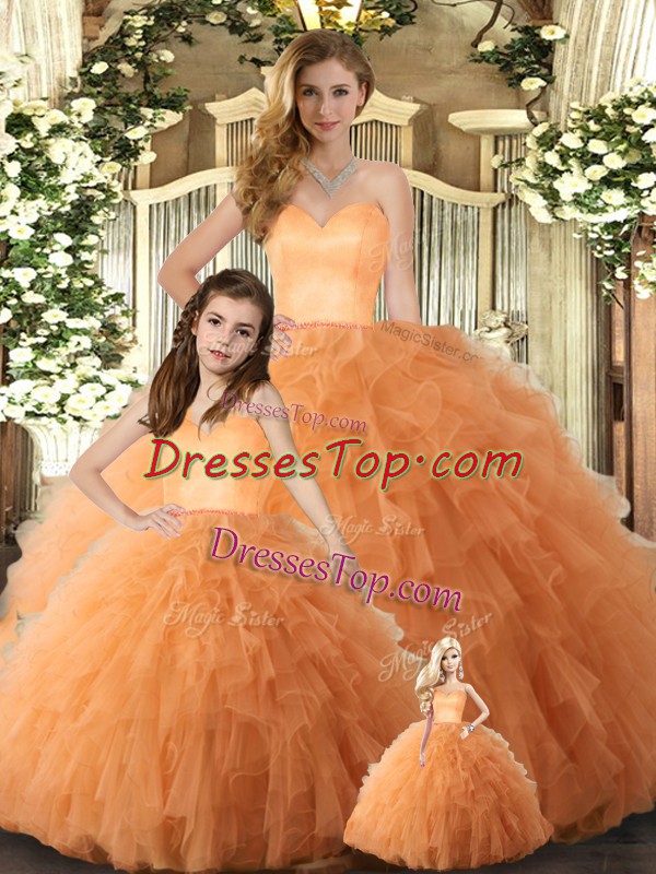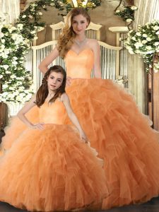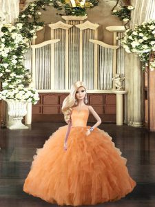 Shining Orange Ball Gowns Ruffles Quinceanera Dress Lace Up Tulle Sleeveless Floor Length