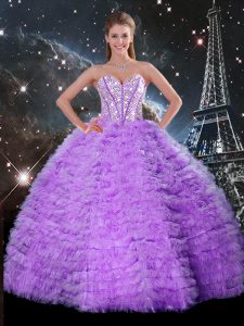 Shining Organza Sleeveless Floor Length Sweet 16 Quinceanera Dress and Beading and Ruffled Layers