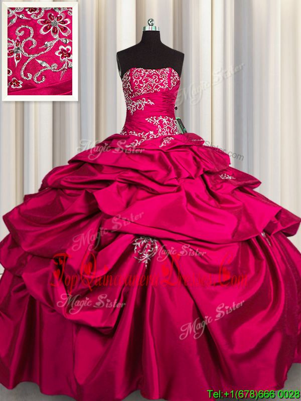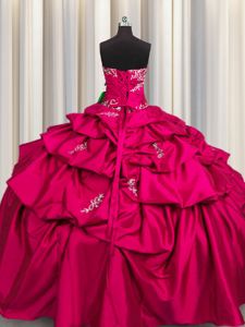 Shining Pick Ups Floor Length Ball Gowns Sleeveless Hot Pink Vestidos de Quinceanera Lace Up